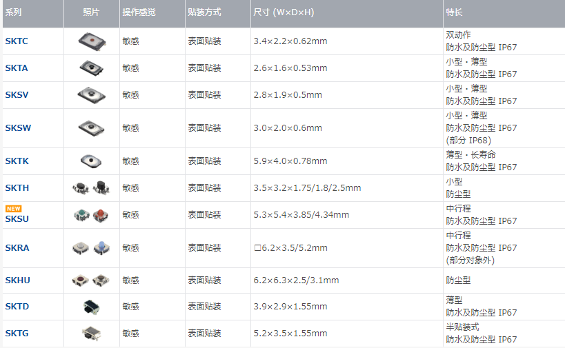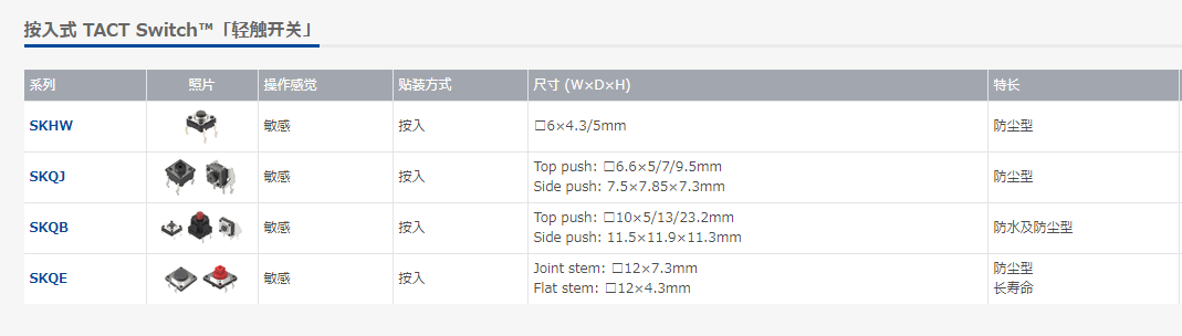 防水及防塵對(duì)應(yīng)產(chǎn)品當(dāng)前位置:首頁 > 產(chǎn)品中心 > 阿爾卑斯阿爾派(ALPS ALPINE) > TACT Switch > 防水及防塵對(duì)應(yīng)產(chǎn)品